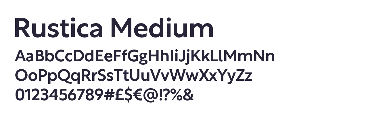 Rustica is a clear sans-serif that is to be used for titles or any typography that needs to be highly legible. The font family has various weights that can be used, though we predominantly use the medium weight.